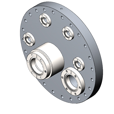 /FM10, 10″ O.D. CF flange with all feedthroughs needed for operation. Does not include source shutter.