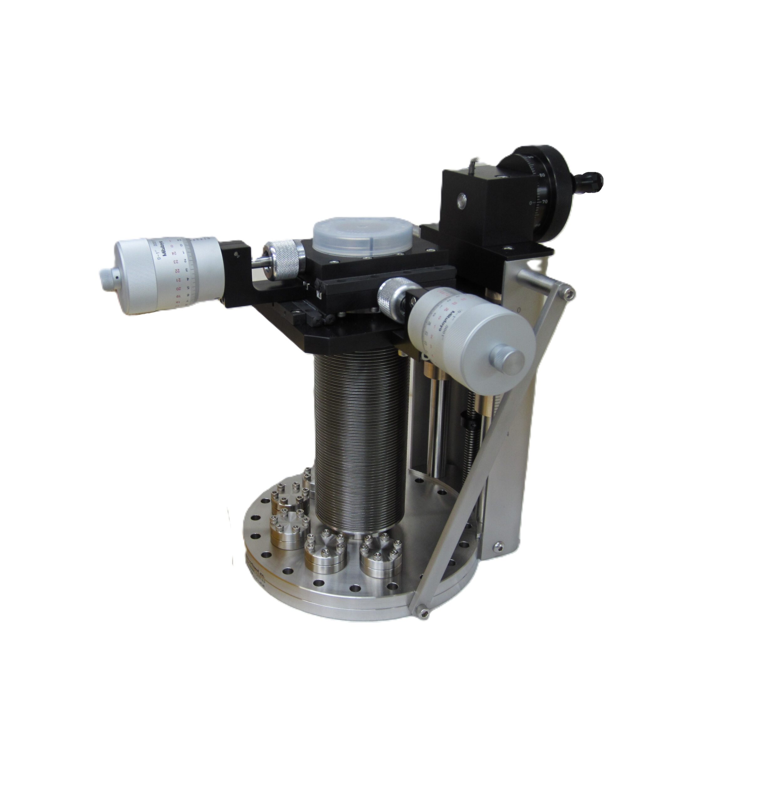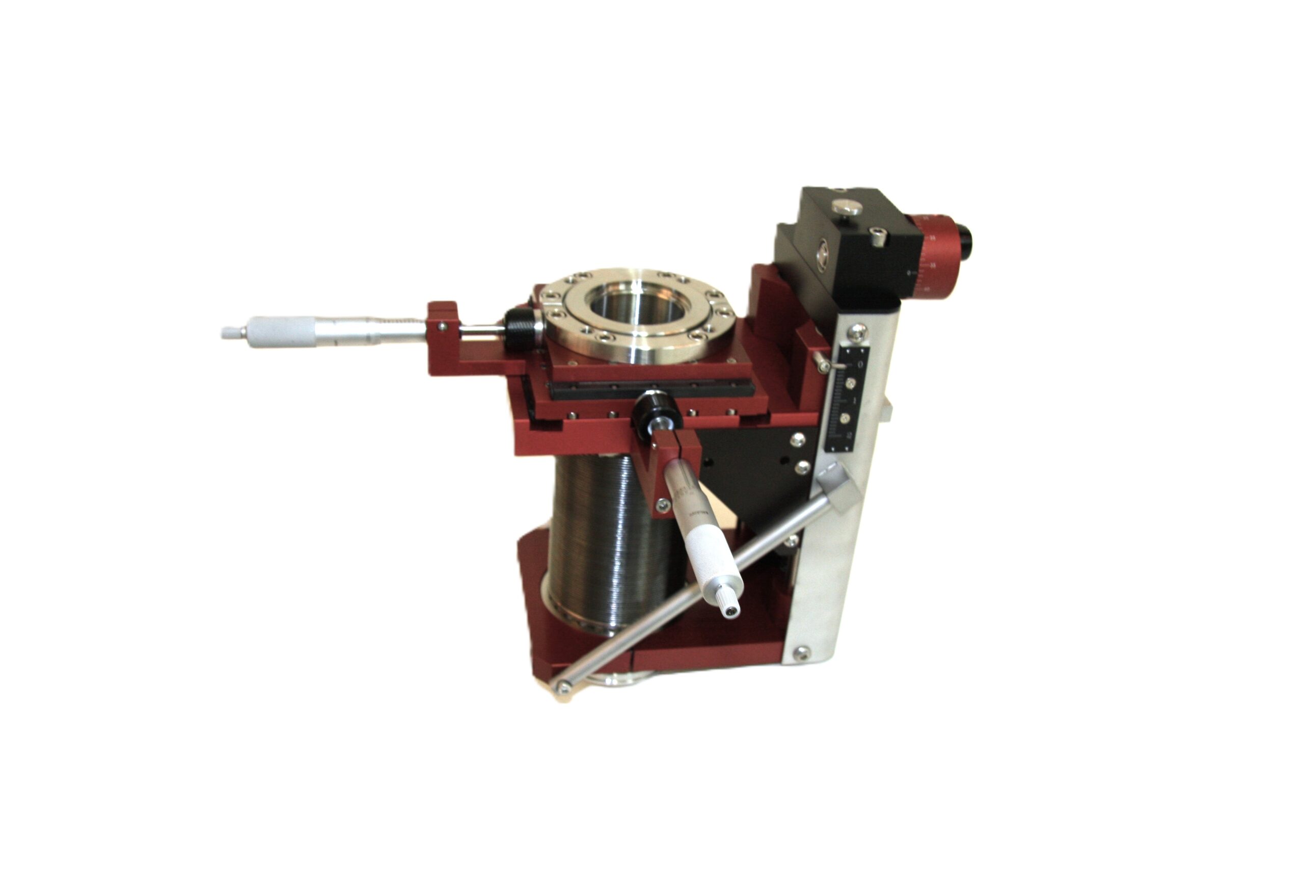 - ±0.5″ X and Y travel, circular pattern, preloaded micrometer-to-stage coupling, 0.001″ micrometer divisions