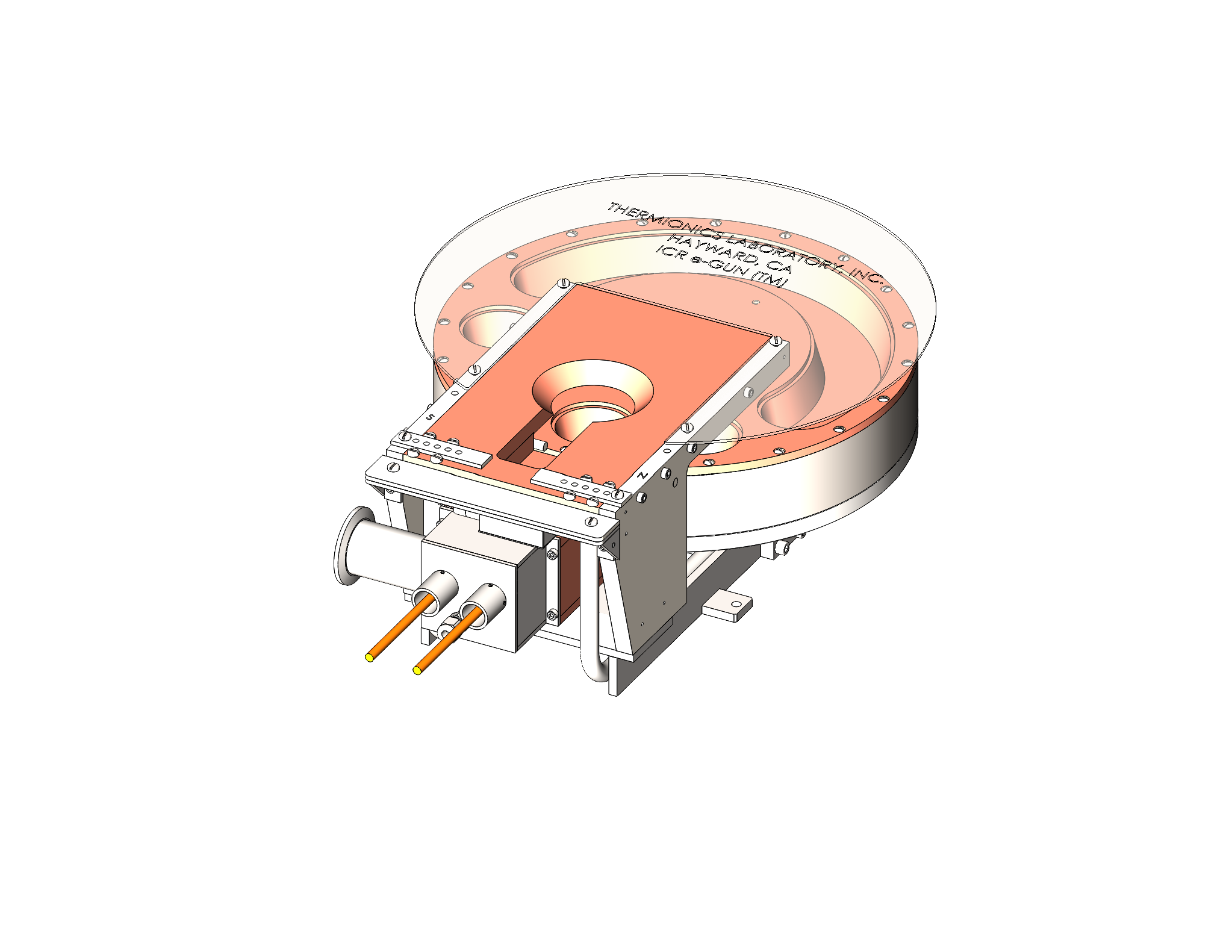 The Thermionics ICR e-Gun™ is available with capacity up to 1500cc in a carousel configuration as pictured here or as a multi-pocket e-Gun™ with up to 10 each 75cc crucibles.