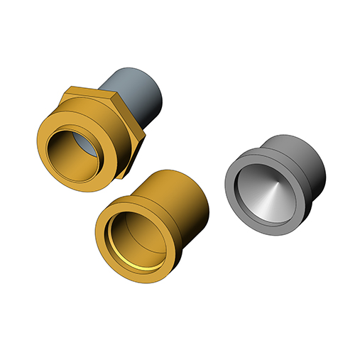 RL fittings are available in a choice of brass or stainless steel. (Please specify your choice when ordering.) They are machined from solid bar stock. They may also be specially ordered in Teflon, nylon or any machinable plastic. Brass fittings have been most popular, and a large inventory is maintained at the factory to ensure prompt shipment. All RL fittings are bakeable to 200°C (392°F). Bakeout is usually required to achieve pressures of 1 x 10-7 Torr. Assembly of RL fittings is quick and easy.